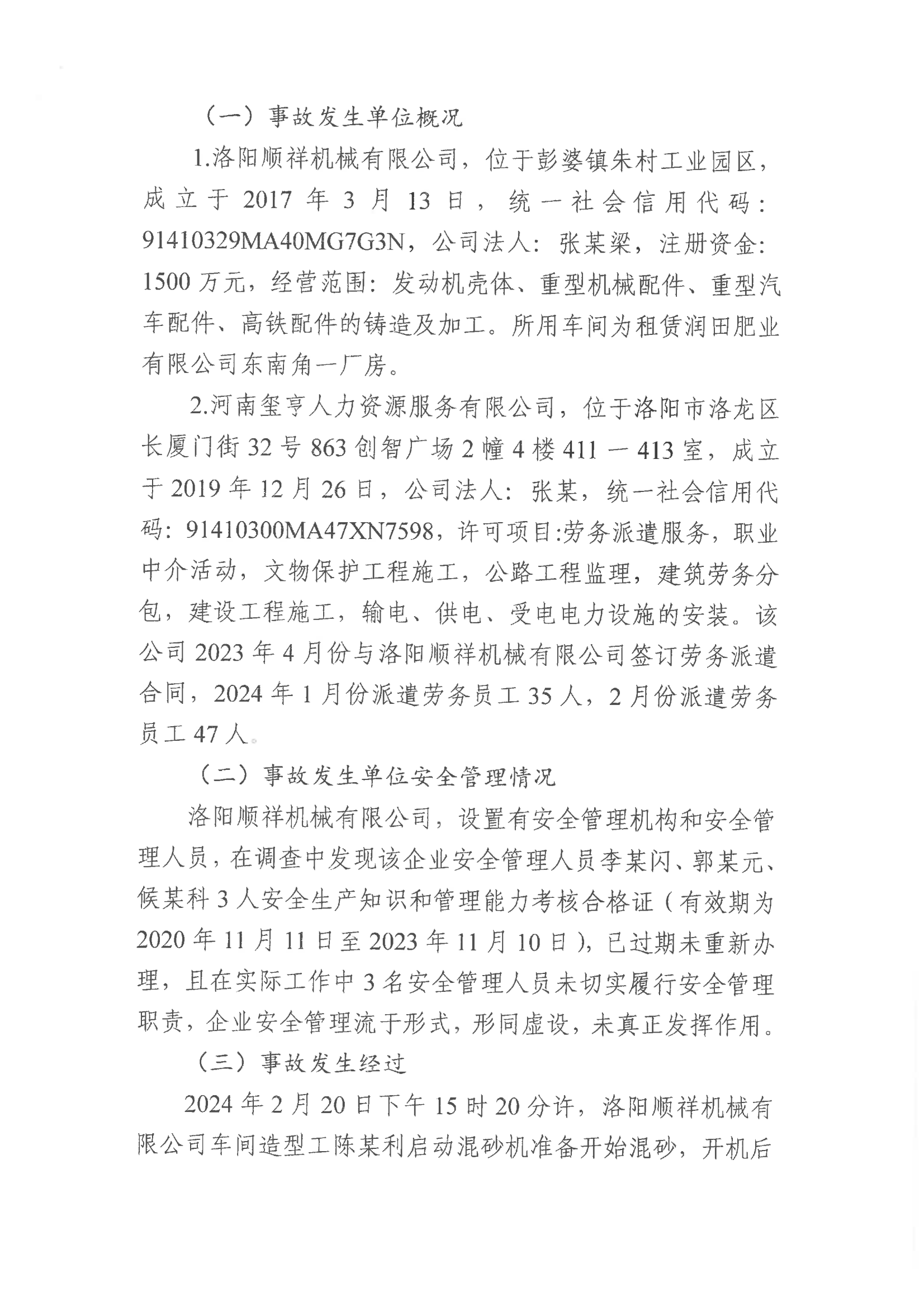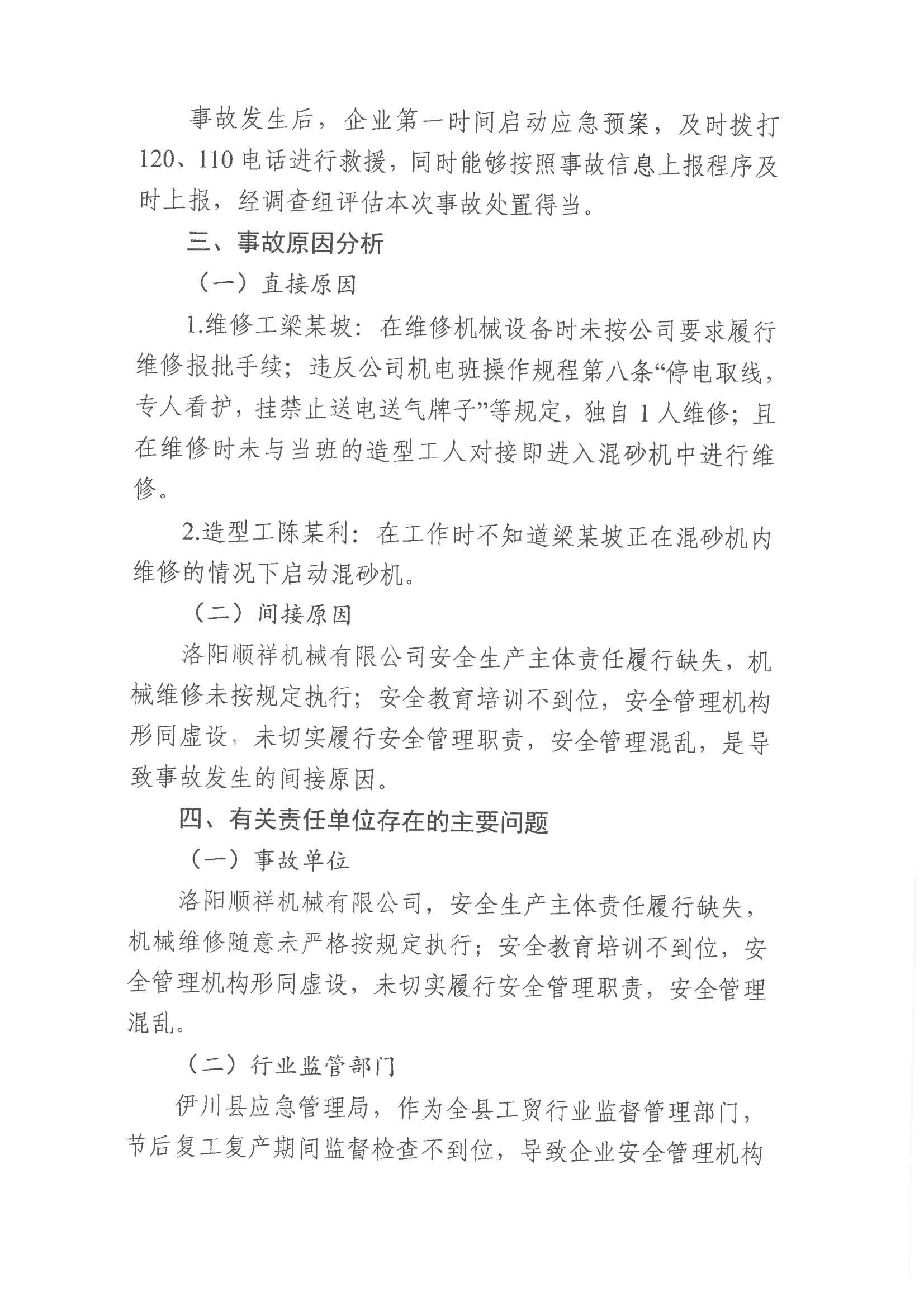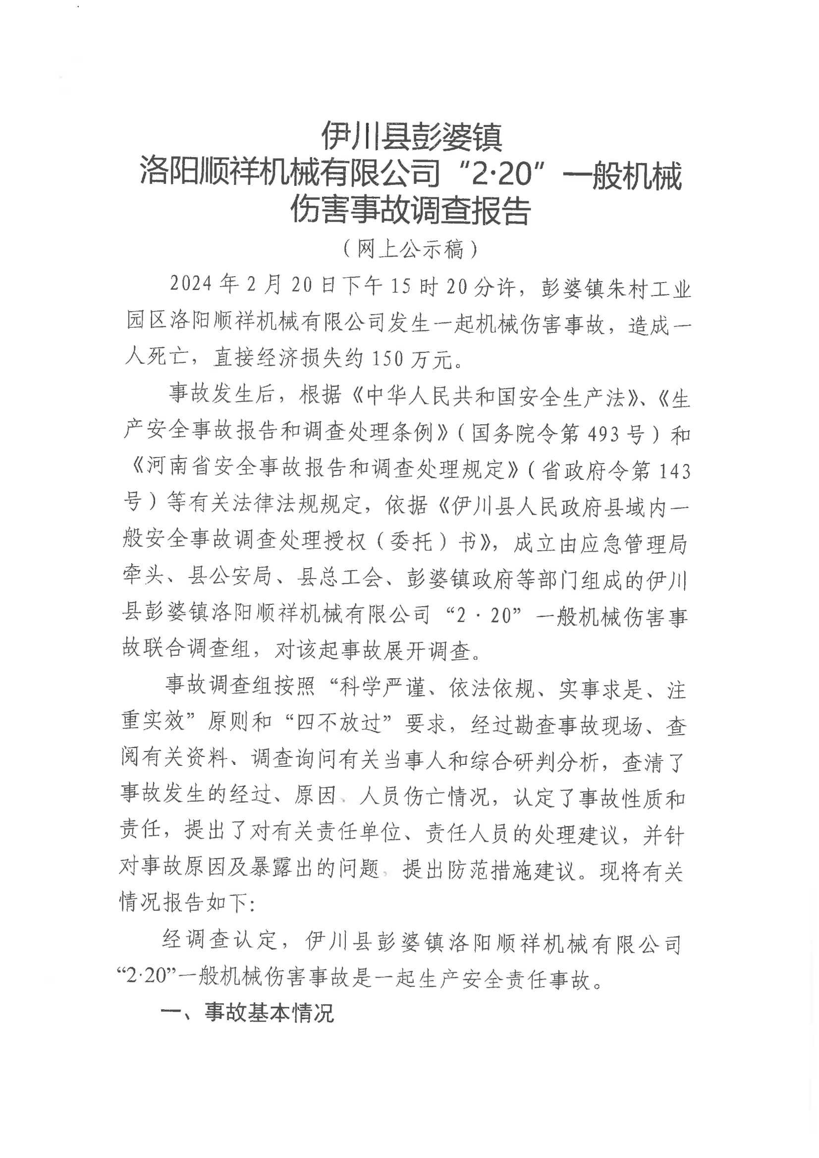 伊川縣彭婆鎮(zhèn)洛陽順祥機(jī)械有限公司“2.20”一般機(jī)械傷害事故調(diào)查報告