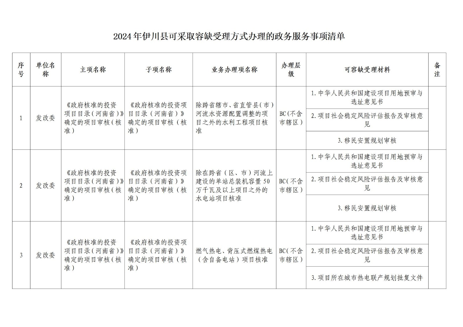 1.2024年伊川縣可采取容缺受理方式辦理的政務(wù)服務(wù)事項(xiàng)清單